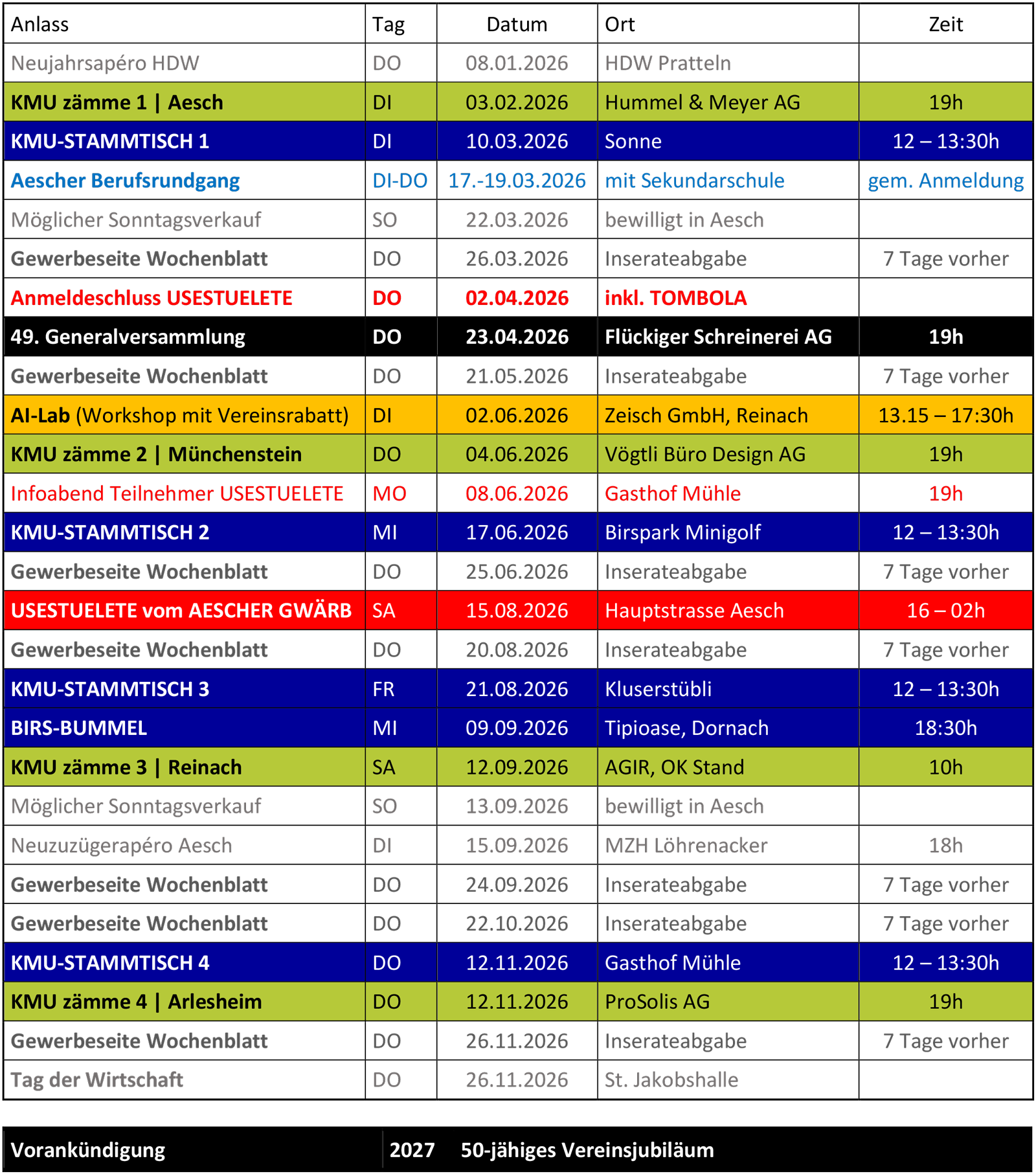 - DO 02.04.2026 Anmeldeschluss USESTUELETE inkl. TOMBOLA