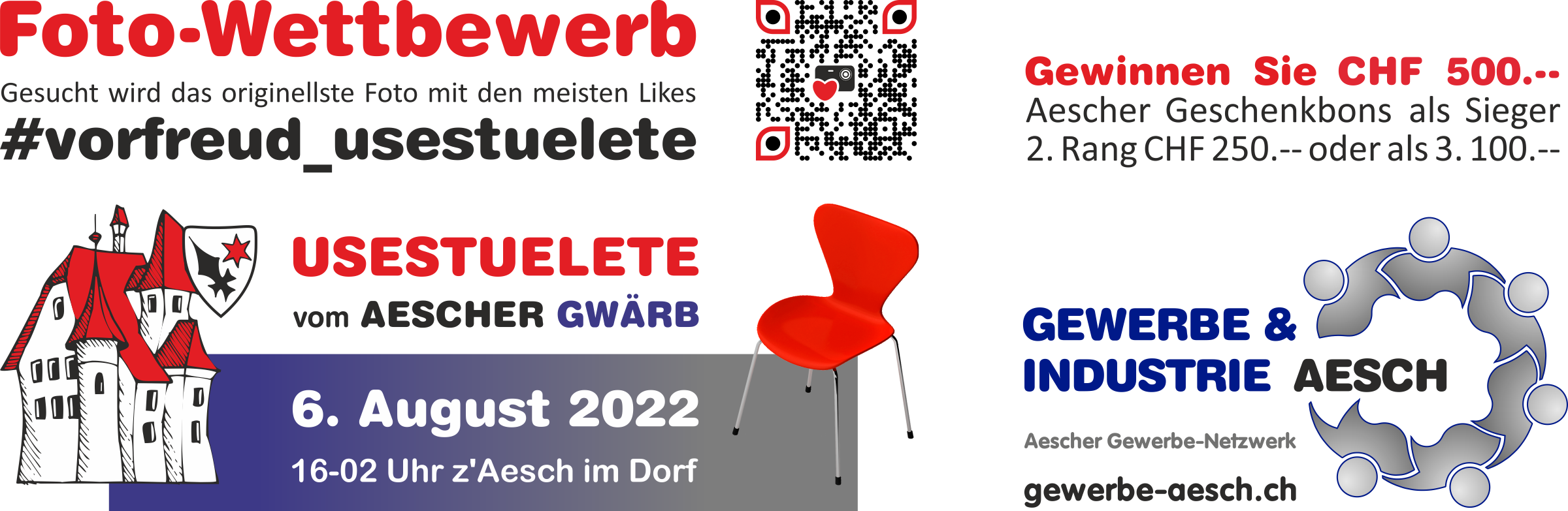 Mach doch auch beim Fotowettbewerb mit und teile deine/eure Vorfreude uf d USESTUELETE vom AESCHER GWÄRB am 6.8.2022. www.usestuelete.ch